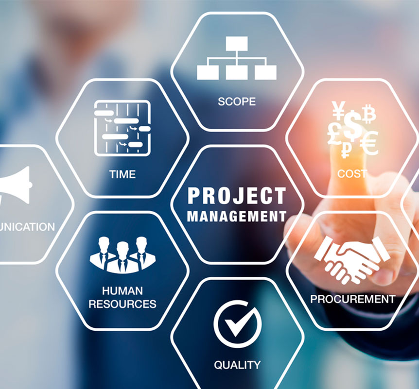 Aseguramos la mejor ruta para alcanzar el éxito en los proyectos de la empresa. A través de nuestro servicio de Project Management estudiamos la viabilidad de los proyectos, iniciando con una evaluación financiera con base en el tiempo y la inversión, además de los costes y la calidad final. Incluimos una estrategia definida en coordinación con el departamento de recursos humanos, para obtener la mayor ventaja a las habilidades del personal involucrado en actividades clave, para así alcanzar los objetivos de la compañía.