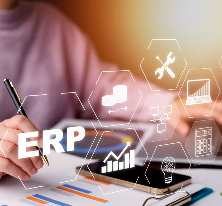 Por sus siglas en inglés, la planificación de recursos empresariales (ERP) consiste en el suministro, instalación y puesta a punto de un poderoso software que te dará la capacidad de análisis, gestión y automatización de los procesos operativos y administrativos de tu empresa, es decir, te da control y vision sobre todo lo que implica para su óptimo funcionamiento. Puede abarcar áreas como la de finanzas, recursos humanos, manufactura, logística, ventas, marketing, entre otros.